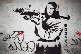 Банкси получава интензивен курс по заличаване, когато започва да рисува на 14. Сестра му изхвърля негови рисунки, защото „никога няма да бъдат окачени в Лувъра”. Да, никога преди 2004 г., когато прави версията си на Мона Лиза част от колекцията на Лувъра. На мястото на оригиналното ѝ лице се усмихва хипи-слънце, а някои посетители не откриват новото изображение, защото и галериите са част от туризма, както казва той самият. Един от първите му образи на Мона Лиза, с ракетомет (2001 г.), е забелязан от неизвестен автор и трансформиран в Осама бин Ладен. Историята напомня разказа „Графити” на Кортасар, въпреки че там естетическото съревнование е продължително любовно обяснение, а противопоставянето на реда започва от признанието за скука и липсата на цветност: „Само веднъж написа с черен тебешир: „Мен също ме боли”. Не минаха и два часа, и този път полицията лично се зае да изчисти надписа.” Също както в разказа на Кортасар, графитите на Банкси престояват обикновено два-три дни, особено ако си играят с органите на реда на централни места. Затова е учудващо, че малко преди ъгъла на Regents Park Road и Chalk Farm в Камдън Таун, камериерката, нарисувана от него през 2006 г., е останала невредима и все още почиства тротоара. Дори стената-бяла завеса изглежда освежена.
